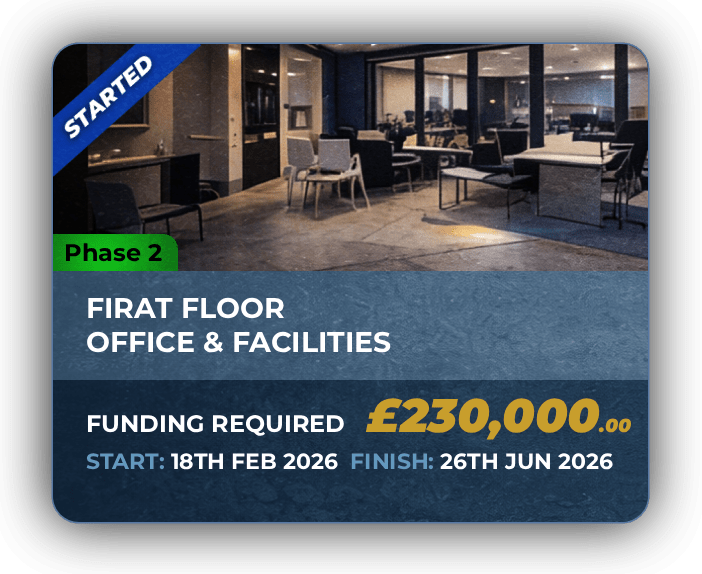 Donors supporting Phase 2 are contributing directly to the creation of functional, operational spaces where education, media production, and charitable work will take place.